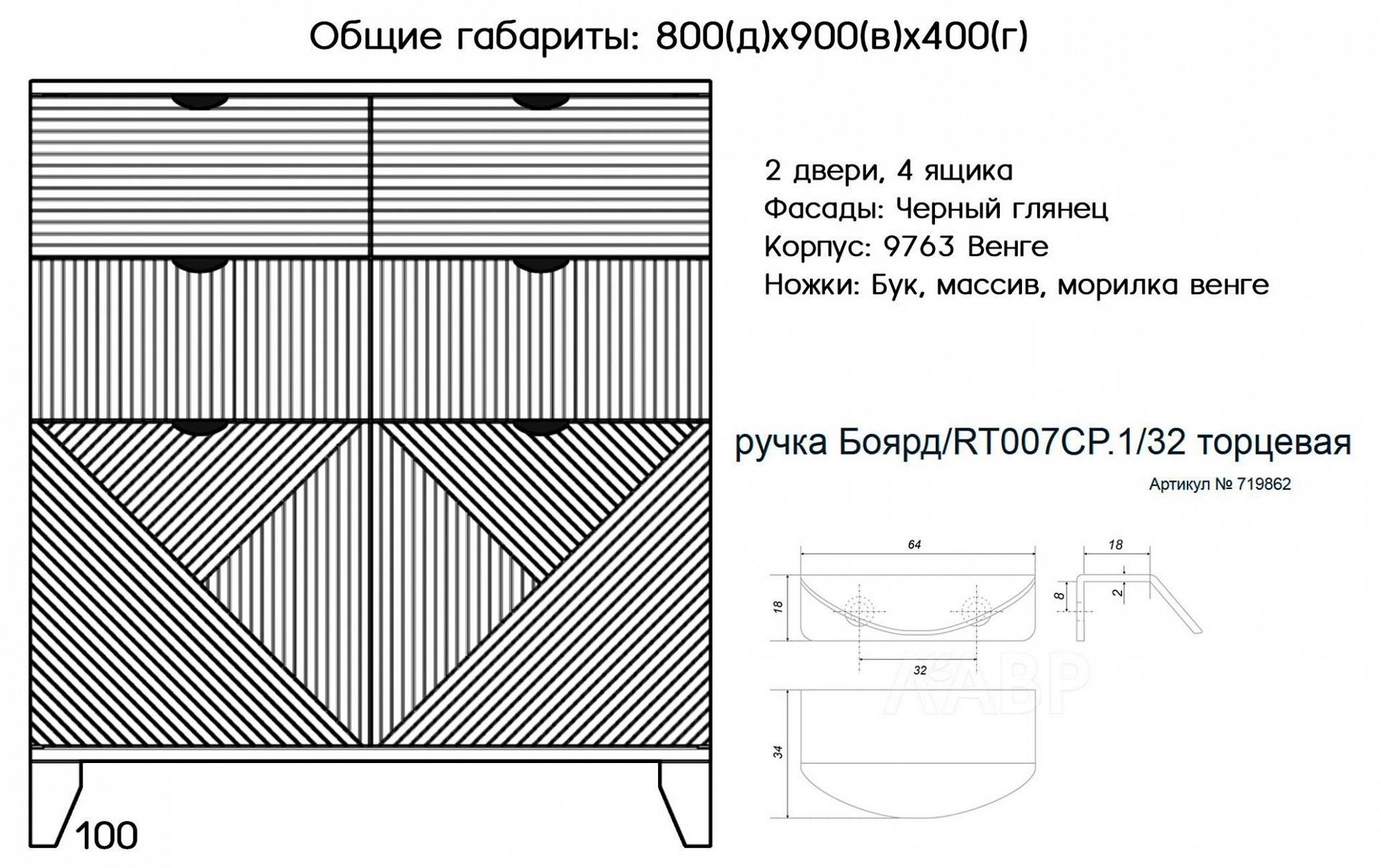 2 дверцы, 4 ящика