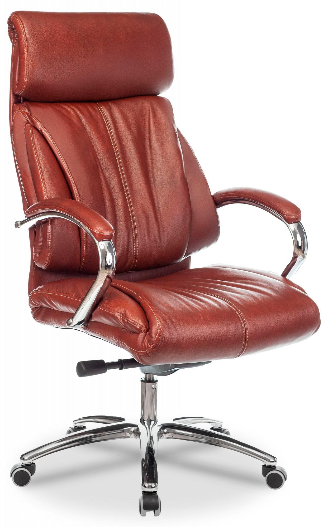 Механизм со смещенной осью качания с регулировкой под вес и возможностью фиксации в нескольких положениях. Регулировка высоты (газлифт). Подлокотники хромированные с мягкими кожаными накладками. Крестовина хром. Материал обивки: натуральная кожа (лицевые части) /экокожа (задняя и торцевые части).