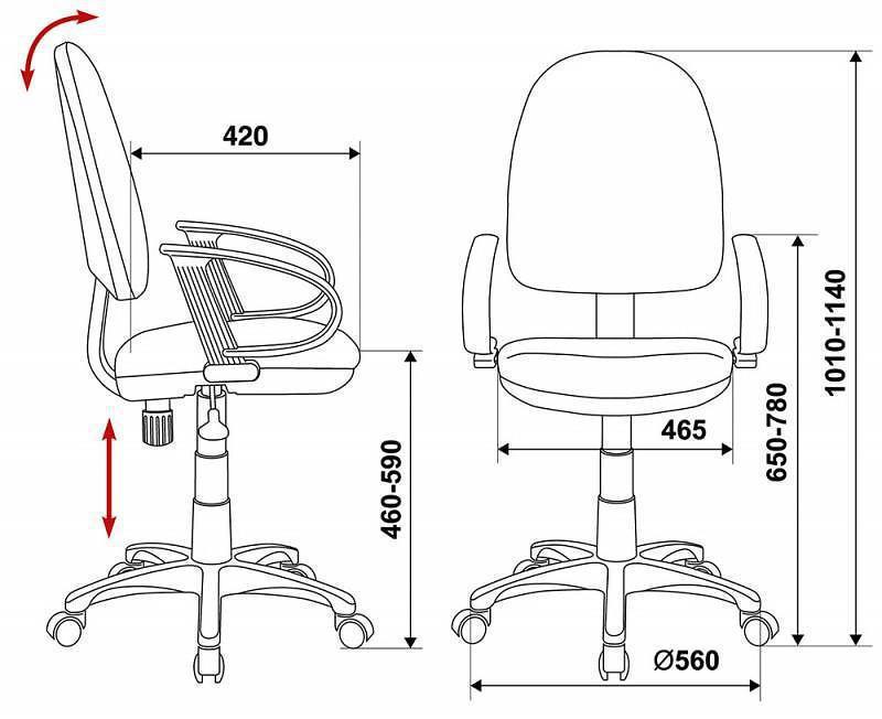 высота от пола до подлокотников - 650-780 мм
