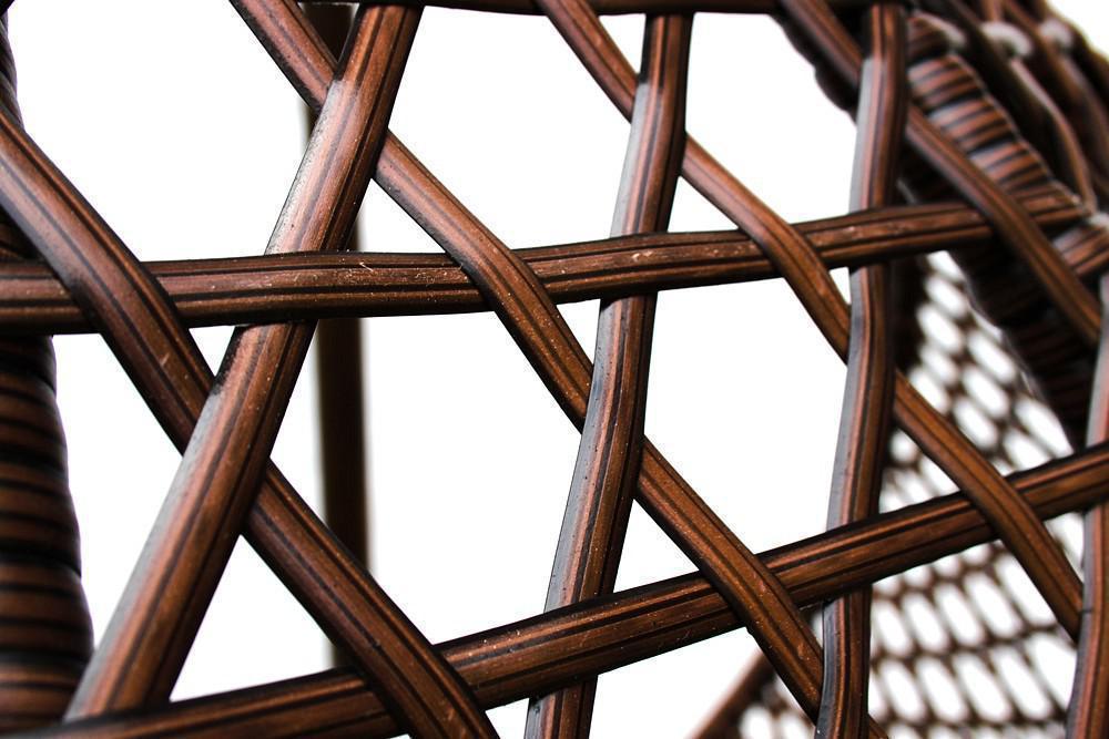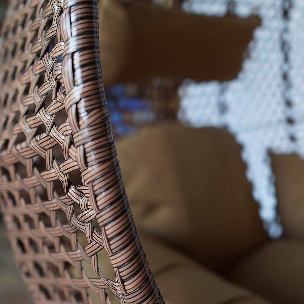 Оригинальное плетение “сетка” из искусственного ротанга обеспечит проникновение теплых лучей солнца сквозь стенки импровизированного кокона.