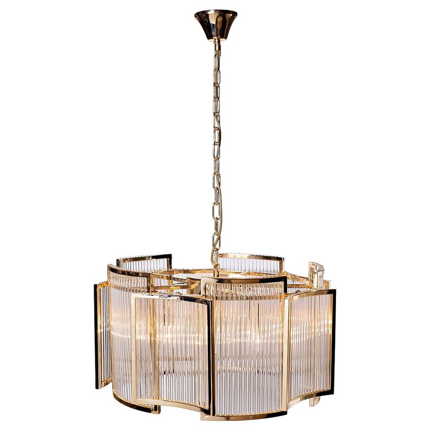 Данная модель входит в состав коллекции Jet Set Gold и исполнена в стиле модерн. Люстра имеет высоту 375-1045 мм и диаметр 590 мм. Работает при напряжении 230 V.