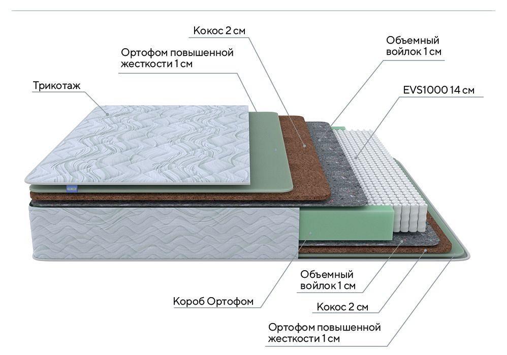 Матрас ProSon Green Extra F содержит прослойку из кокосовой койры. Кокос — натуральный материал, отлично дышит, придает матрасу жесткость и упругость.
