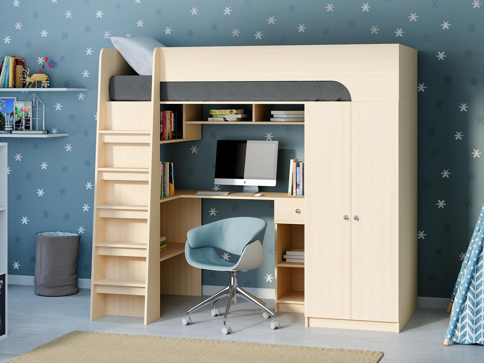 Ваш ребенок подрос и пришла пора обновить мебель в детской? Набор для детской Астра 10 RVM_ASTRA10-1-1 – отличное решение, которое понравится не только вам, но и будущему маленькому хозяину или хозяйке. Изделие изготовлено известным брендом РВ-Мебель (Россия) и относится к коллекции «Астра 10». Оригинальный матовый корпус оттенка дуб молочный смотрится изысканно и изящно, гармонично дополняя фасад, изготовленный из практичного и востребованного для детской материала (ЛДСП Е1). Перед покупкой новой кровати советуем тщательно замерить свободную площадь в помещении, чтобы кровать оптимально подошла по габаритам (1800 мм в высоту, 1992 мм в ширину и (уточните актуальную информацию у нашего консультанта) мм в длину), а также подобрать матрас 1900x800 мм. В комплект входит лестница;