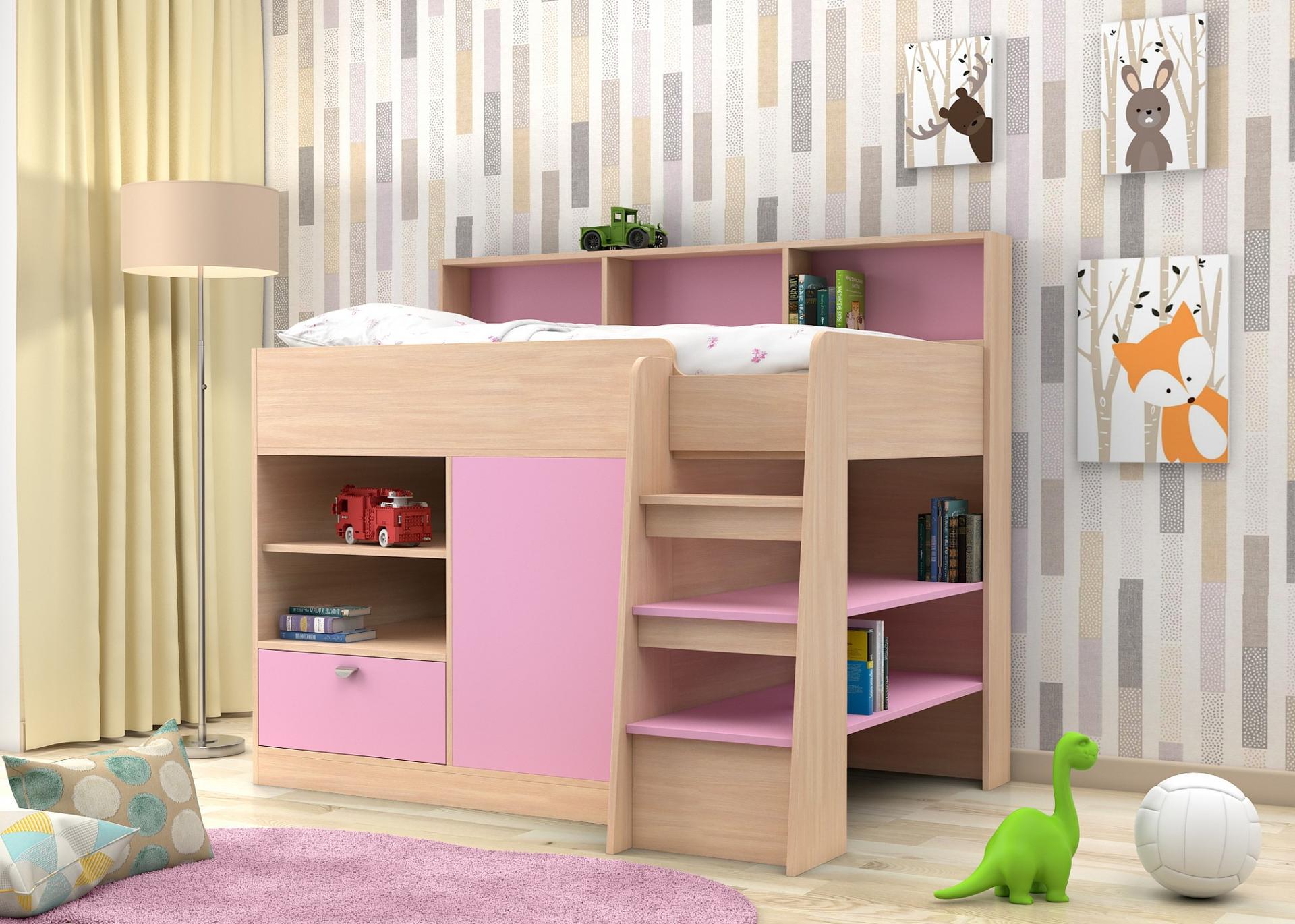 Ваш ребенок подрос и пришла пора обновить мебель в детской комнате? Набор для детской Golden Kids 9 FSN_GK09-KM-FR – отличное решение, которое придется по душе не только вам, но и будущему маленькому хозяину или хозяйке. Изделие изготовлено известным брендом Golden Kids (Россия) и входит в серию «Golden Kids 9». Эффектный матовый корпус оттенка дуб молочный, розовый смотрится изысканно и изящно, гармонично дополняя фасад, изготовленный из практичного и оптимального для детской материала (ЛДСП Е1). Перед приобретением новой кровати советуем тщательно замерить свободную площадь в комнате, чтобы кровать оптимально подошла по размерам (1382 мм в высоту, 1669 мм в ширину и (уточните актуальную информацию у нашего консультанта) мм в длину), а также подобрать матрас 1600x800 мм мм. В комплект входит лестница,