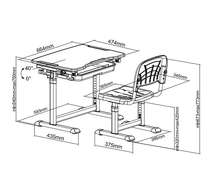 Угол наклона стол - От 0 до 40°.