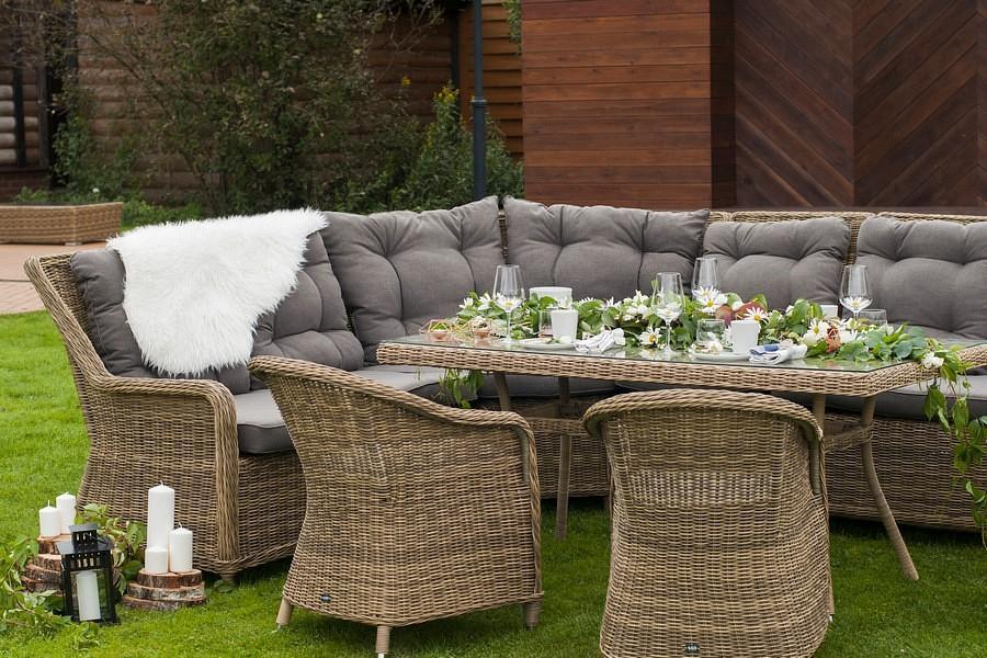 Подушки выполнены из водостойкой полиэфирной ткани для защиты мебели от дождя и солнца.