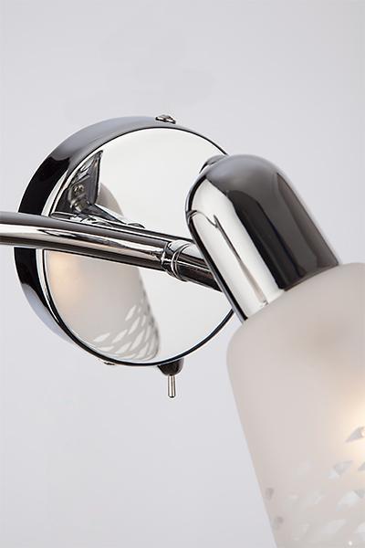Настенный светильник с поворотными плафонами 20053/3 хром создаст качественное дополнительное освещение и станет эффектным дополнением к основному источнику света. Благодаря декоративному стеклянному плафону бра создает мягкое равномерное свечение, подходящее для комфортного чтения книг в вечернее время. В качестве источника света используются сменные лампы типа "Свеча" или "Шар" с цоколем E14. Патрон рассчитан на максимальную мощность ламп накаливания 40 Вт. Корпус светильника выполнен из высококачественного и прочного металла с надежным покрытием. Бра легко устанавливается при помощи крепежной планки, которая обеспечивает надежную фиксацию светильника на стене. В интернет-магазине Минимир вы можете купить настенный светильник с доставкой по Москве, Санкт-Петербургу и России.