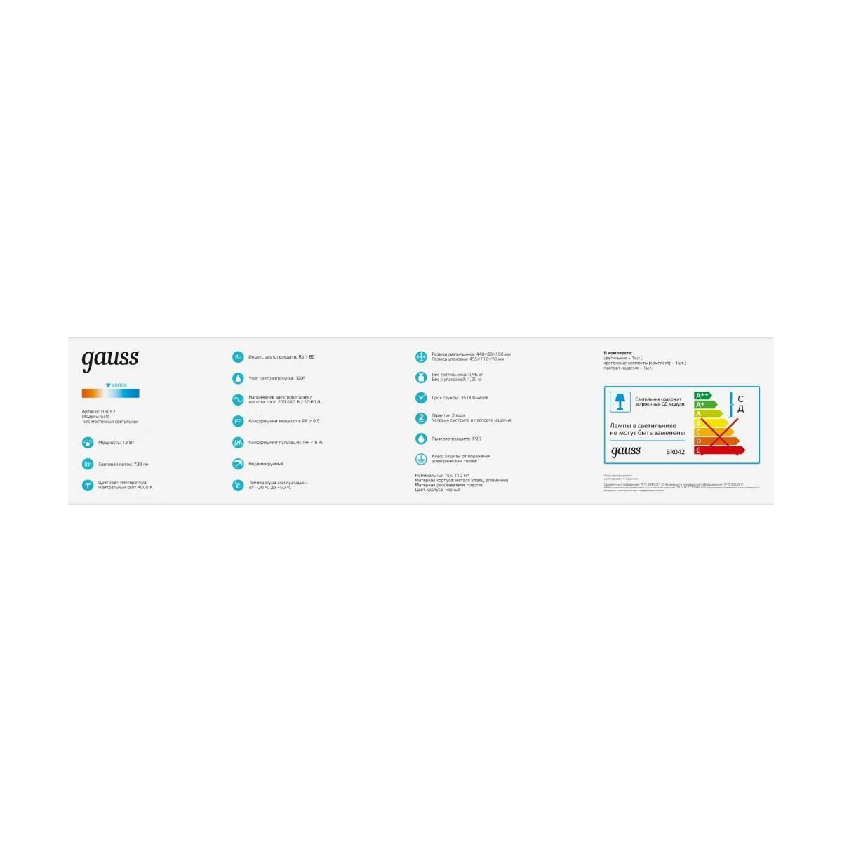 Настенный светодиодный светильник Gauss Safo BR042