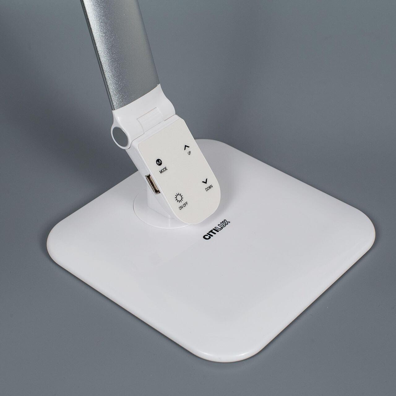 Утонченная модель CL803021 со встроенным выключателем от датской компании Citilux относится к коллекции Ньютон и отлично подойдет для установки на стол офиса, оформленном в стиле хай-тек. Осветительный элемент встроен в конструкцию и не требует приобретения дополнительных лампочек. Прибор произведен с использованием материалов: пластик и металл. Основным цветом товара является серебряный и белый. Настольная лампа CL803021 продается по цене 2990 руб. Торопитесь сделать заказ в интернет-магазине SvetONe.