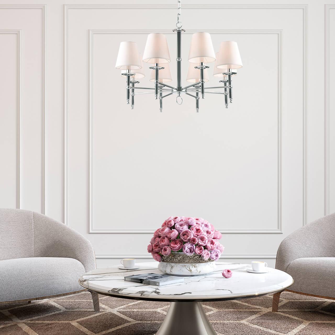 Невероятная модель 1162/01 LM-8 от итальянской компании Divinare относится к коллекции Candela и отлично подойдет для установки на потолок в гостиной, оформленной в стиле модерн. Подвесная люстра Divinare Candela 1162/01 LM-8 с плафонами-конусами осветит помещение площадью 18 кв. м. Производитель Divinare рекомендует использовать для устройства лампы накаливания с цоколем E14 и мощностью 40 W. Прибор произведен с использованием материалов: текстиль, металл и ткань и может использоваться для натяжного потолка. Основным цветом товара является бежевый и серебристо-стальной. Подвесная люстра 1162/01 LM-8 продается по цене 30678 руб, с дисконтом 14% - ваша выгода при покупке составит 5112 руб. Торопитесь сделать заказ в интернет-магазине SvetONe.