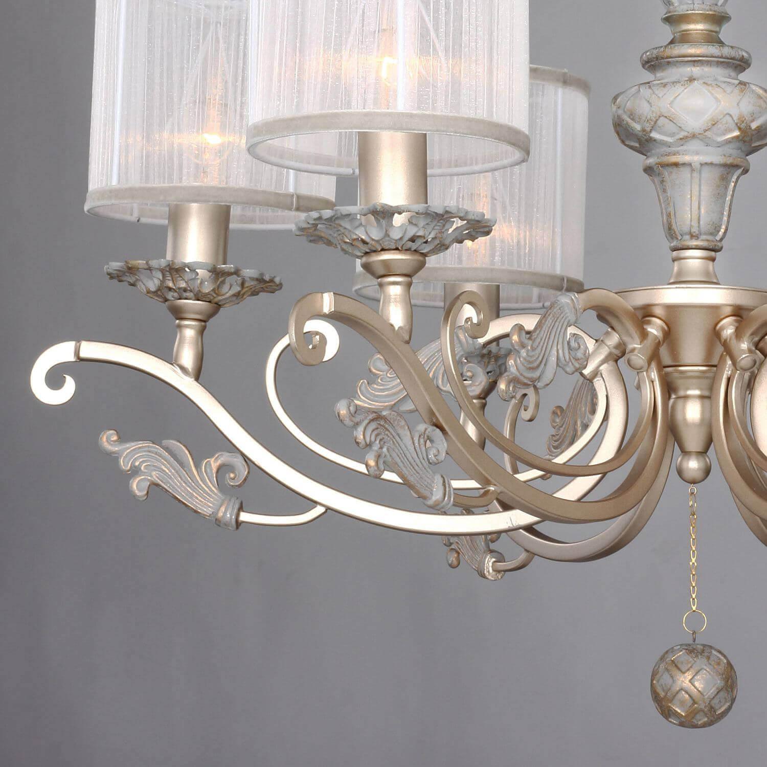 Дивная модель 2307-6P от немецкой компании Favourite относится к коллекции Seraphima и отлично подойдет для установки на потолок спальни, оформленной в классическом стиле. Подвесная люстра Favourite Seraphima 2307-6P с цилиндрическими плафонами осветит помещение площадью 16 кв. м. Производитель Favourite рекомендует использовать для устройства лампы накаливания с цоколем E14 и мощностью 40 W. Прибор произведен с использованием материалов: текстиль, металл и органза и может использоваться для натяжного потолка. Основным цветом товара является белый и золотой. Подвесная люстра 2307-6P продается по цене 26620 руб. Торопитесь сделать заказ в интернет-магазине SvetONe.