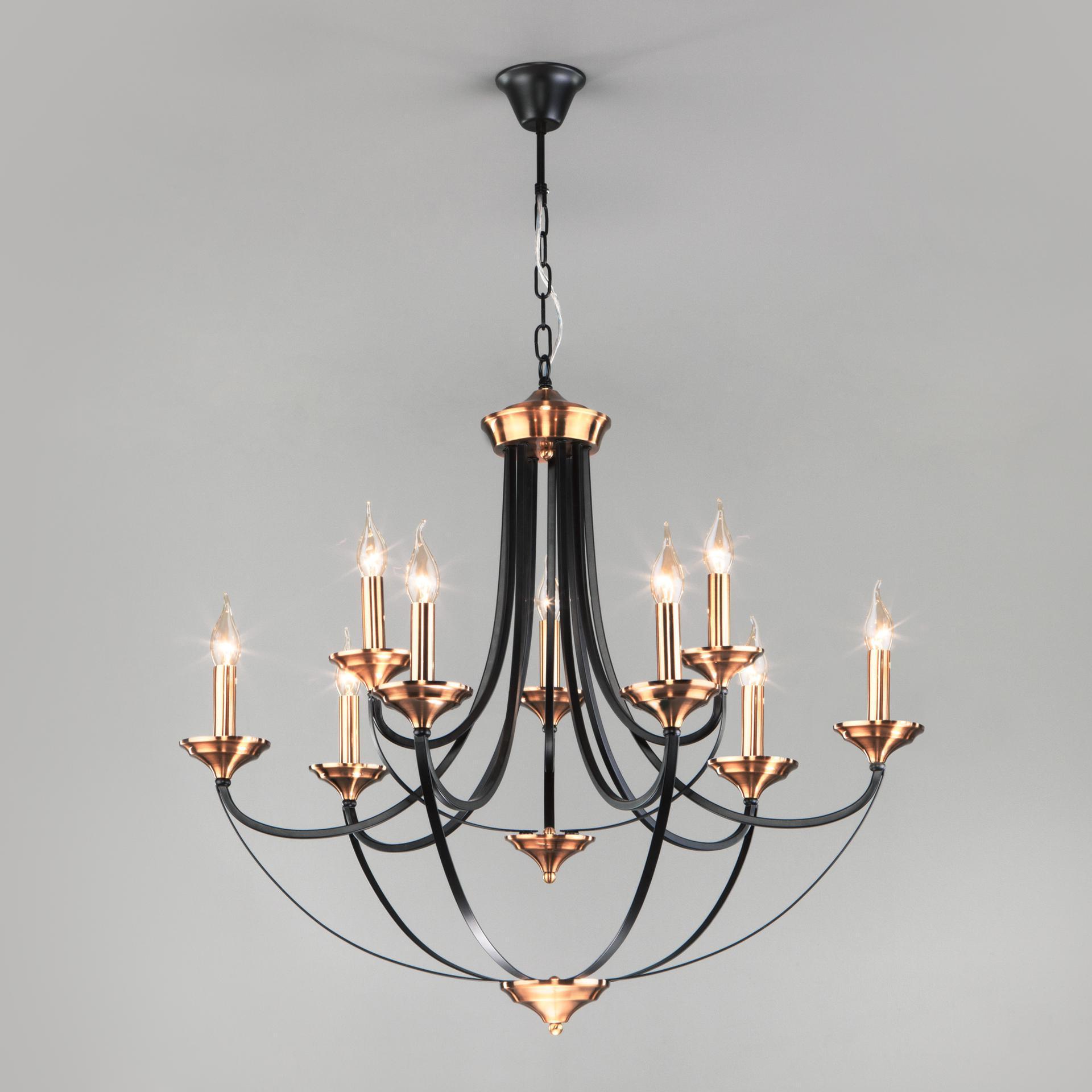 Подвесной светильник 60098/8 в черном цвете предназначен для создания дополнительного освещения и акцентной подсветки в современных интерьерах. Светильник со сменными лампами E14 создаст качественное освещение на площади 41 м кв. и подсветит рабочие зоны в зале, в кабинете, в загородном доме и в других местах. Восьмирожковый светильник без плафонов эстетично смотрится с лампами свеча или свеча на ветру, подобный дизайн позволяет равномерно заполнять помещение светом. Накладной светильник легко устанавливается на потолке при помощи крюка. Наш интернет-магазин предлагает недорого приобрести подвесной светильник с бесплатной доставкой по Москве, России и странам СНГ.