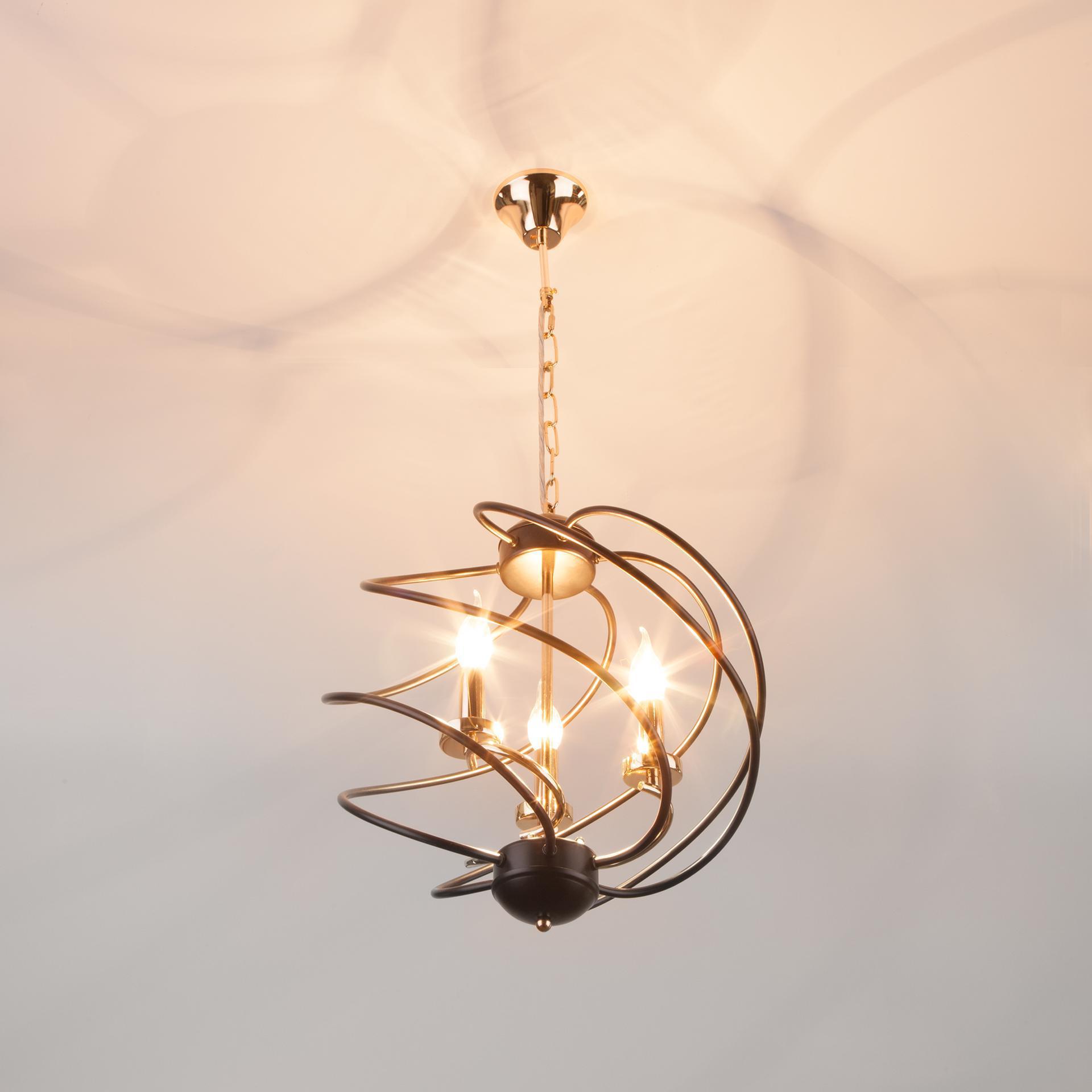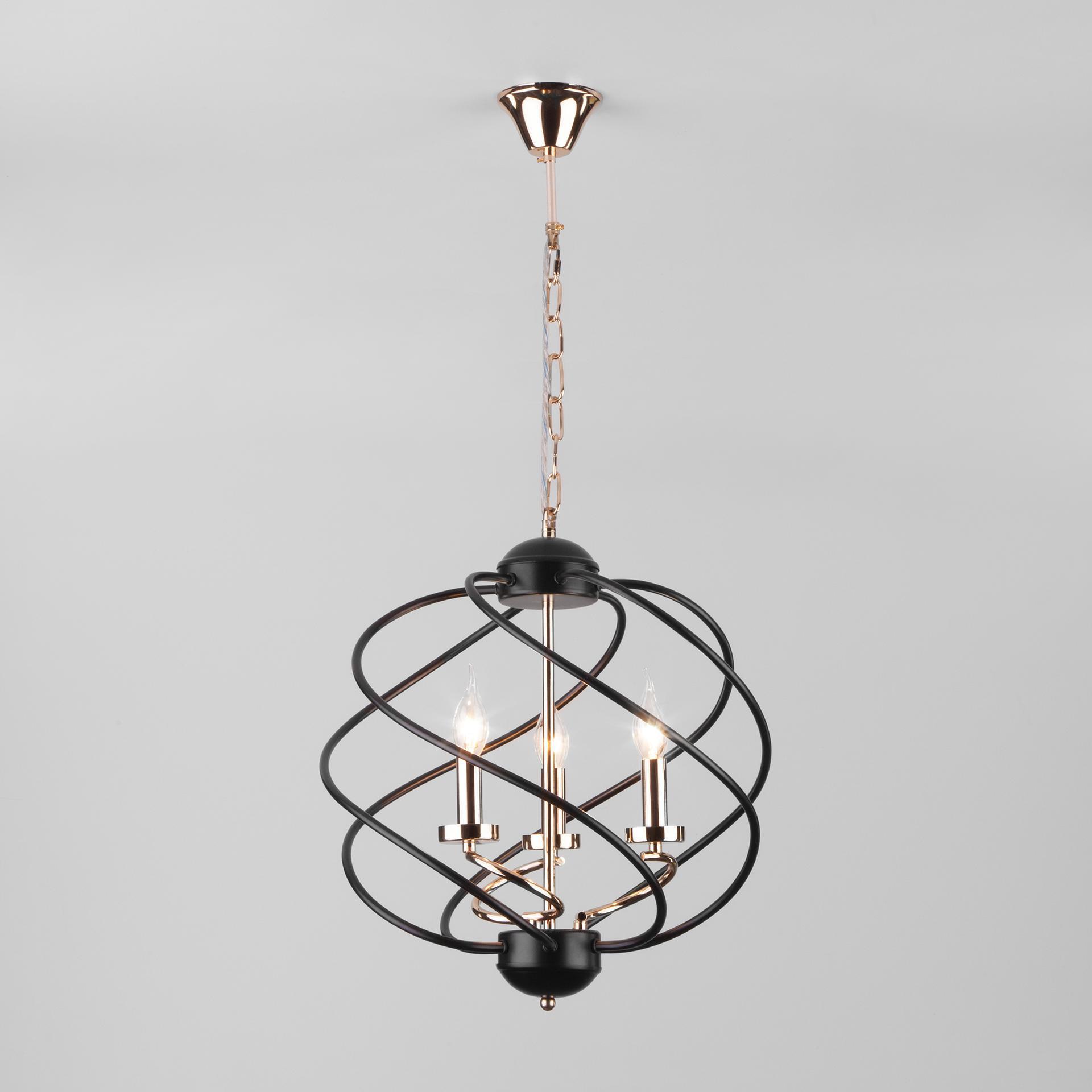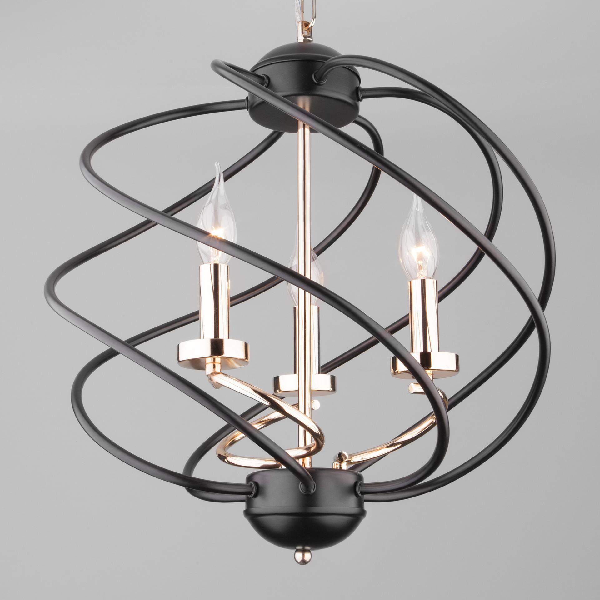 Подвесной светильник 60105/3 в черном цвете с оригинальным дизайном предназначен для создания дополнительного освещения и акцентной подсветки в современных интерьерах. Светильник со сменными лампами Е14 создаст качественное освещение на площади 13 м кв. для кухни, зала, кабинета и других местах. Трехрожковый светильник без плафона заключенный в спиральный металлический шар с открытыми патронами, гармонично смотрится с лампами свеча и свеча на ветру, такой дизайн увеличивает угол рассеивания светового потока. Подвесной светильник просто устанавливается на любых потолках при помощи монтажного крюка. Наш интернет-магазин предлагает недорого купить подвесной светильник с бесплатной доставкой по Москве, России и странам СНГ.