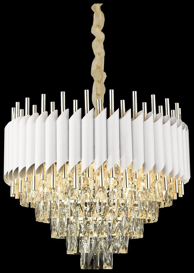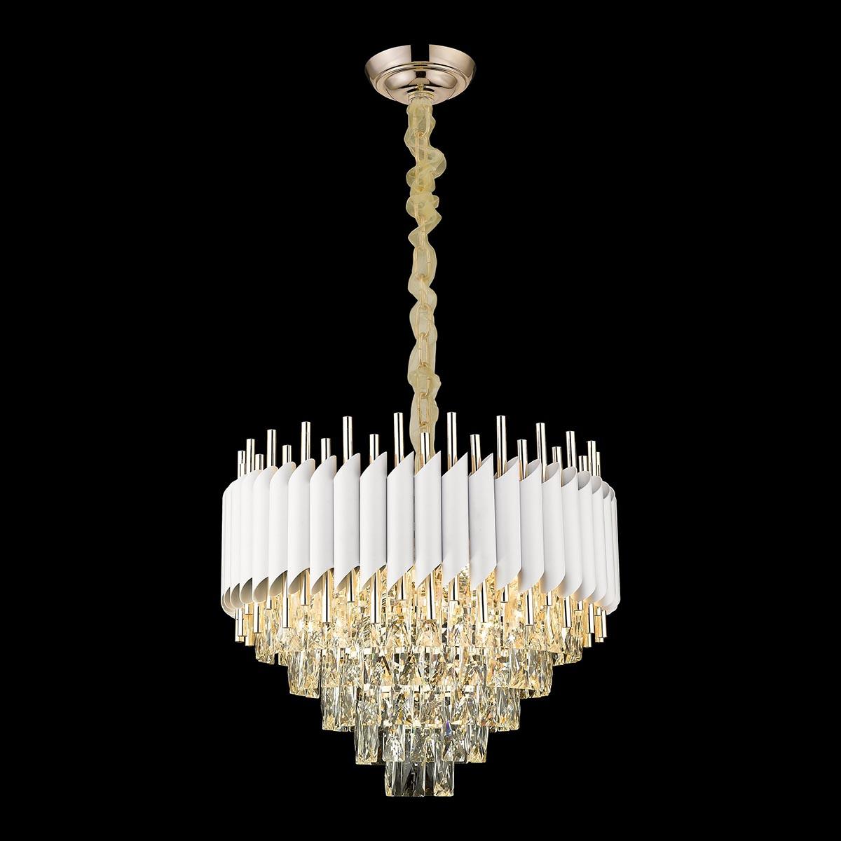 Изящная модель WE138.12.003 от немецкой компании Wertmark относится к коллекции Cartuccia и отлично подойдет для установки на потолок в гостиной, оформленной в стиле модерн. Подвесная люстра Wertmark Cartuccia WE138.12.003 с конусными плафонами осветит помещение площадью 26.7 кв. м. Производитель Wertmark рекомендует использовать для устройства лампы накаливания с цоколем E14 и мощностью 40 W. Прибор произведен с использованием материалов: хрусталь и металл и может использоваться для натяжного потолка. Основным цветом товара является белый, золотой и прозрачный. Подвесная люстра WE138.12.003 продается по цене 56138 руб. Торопитесь сделать заказ в интернет-магазине SvetONe.