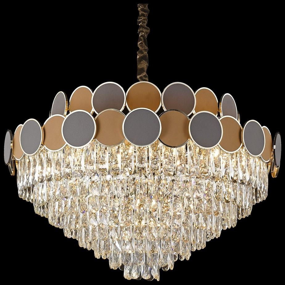 Изумительная модель WE145.21.303 от немецкой компании Wertmark относится к коллекции Oriana и отлично подойдет для установки на потолок больших залов, оформленных в стиле модерн. Подвесная люстра Wertmark Oriana WE145.21.303 с конусными плафонами осветит помещение площадью 46.7 кв. м. Производитель Wertmark рекомендует использовать для устройства лампы накаливания с цоколем E14 и мощностью 40 W. Прибор произведен с использованием материалов: хрусталь, металл и кожа и может использоваться для натяжного потолка. Основным цветом товара является коричневый, золотой и прозрачный. Подвесная люстра WE145.21.303 продается по цене 82165 руб, с дисконтом 41% - ваша выгода при покупке составит 58072 руб. Торопитесь сделать заказ в интернет-магазине SvetONe.