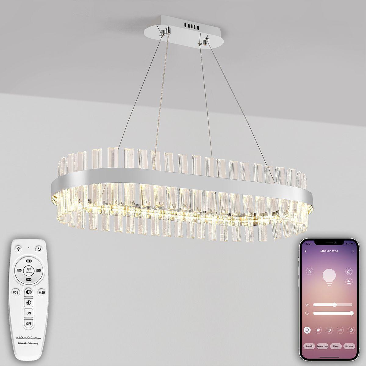 Выдающаяся модель Led Lamps 81253 от немецкой компании Natali Kovaltseva относится к коллекции Smart Нимбы и отлично подойдет для установки на потолок в гостиной, оформленной в стиле модерн. Подвесной светодиодный светильник Natali Kovaltseva Smart Нимбы Led Lamps 81253 с овальными плафонами осветит помещение площадью 20 кв. м. холодным светом. Осветительный элемент встроен в конструкцию и не требует приобретения дополнительных лампочек. Прибор произведен с использованием материалов: хрусталь и металл и может использоваться для натяжного потолка. В комплект поставки входит пульт дистанционного управления. Основным цветом товара является хромовый и серебристо-стальной. Торопитесь сделать заказ в интернет-магазине SvetONe.