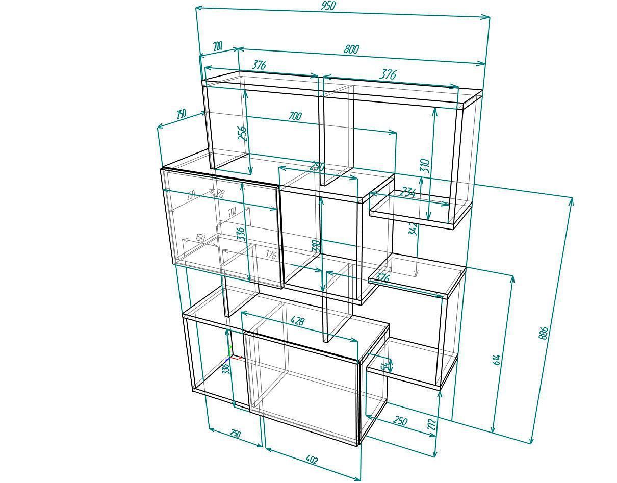 3 дверцы, 5 полок