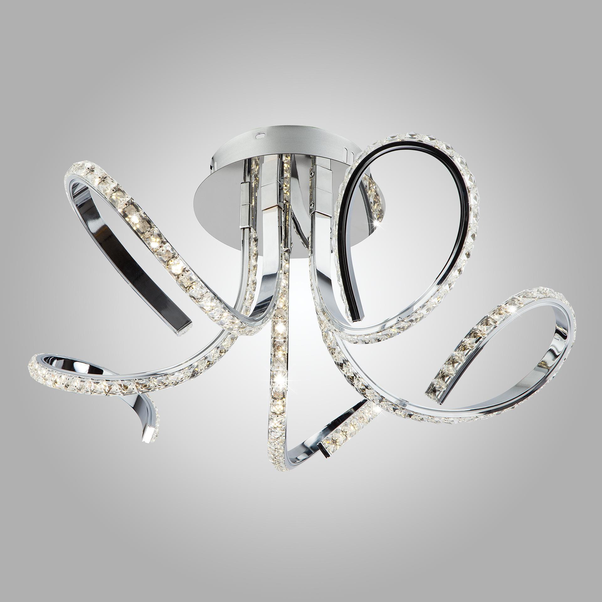 Потолочная светодиодная люстра 90063/5 хром поможет создать качественное освещение на площади 22 м.кв. и дополнить современный интерьер. Светильник украшен декоративным хрусталем и оснащен энергоэффективными SMD светодиодами мощностью 48 Вт, создающие световой поток 4416 лм. При изготовлении потолочного светильника были использован высококачественный металл. Потолочная светодиодная люстра подходит для установки на любые поверхности, в том числе подходит для натяжных и подвесных потолков. В нашем интернет-магазине вы сможете недорого купить светодиодную потолочную люстру с пультом с доставкой по России.