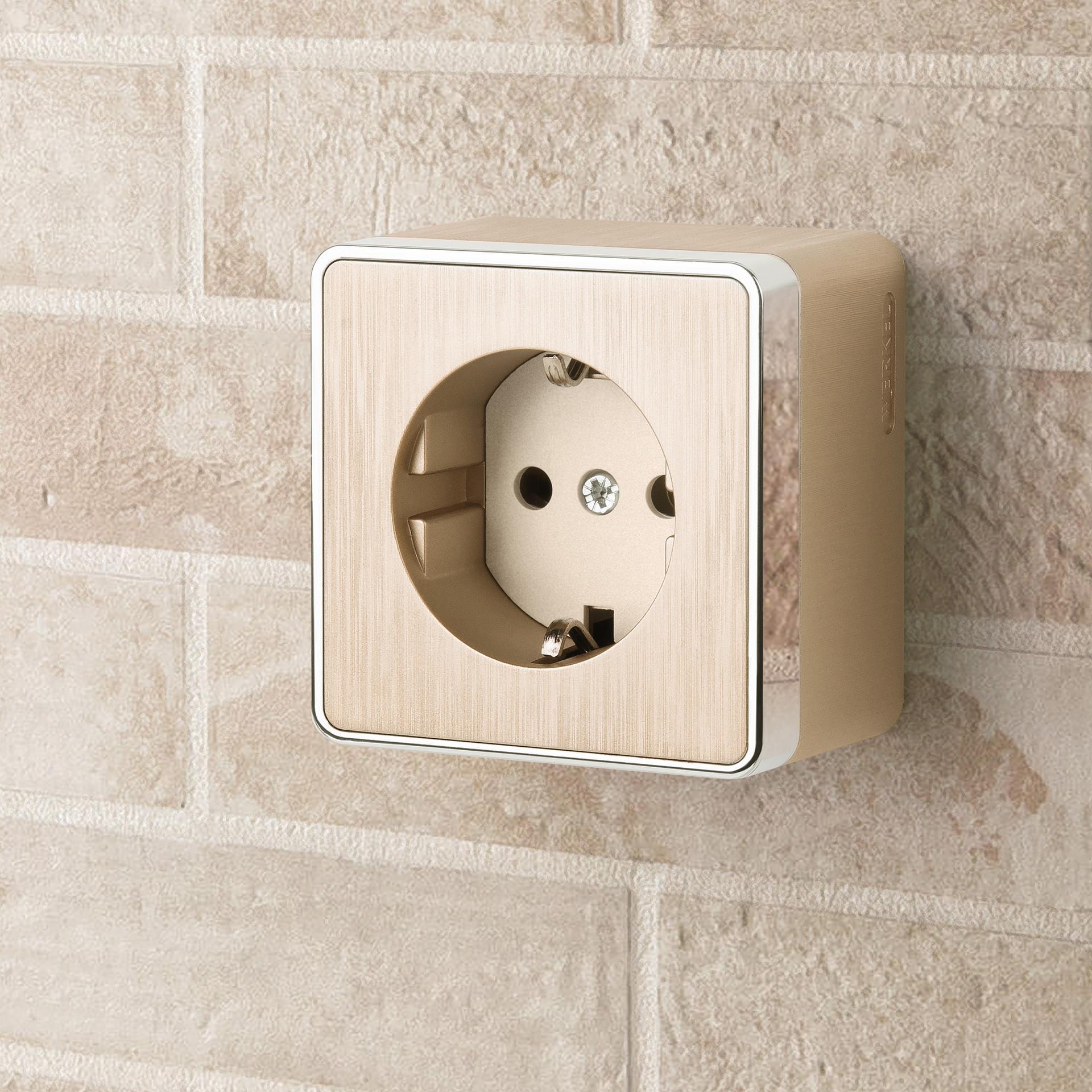 Розетка с заземлением и шторками Gallant шампань рифленый