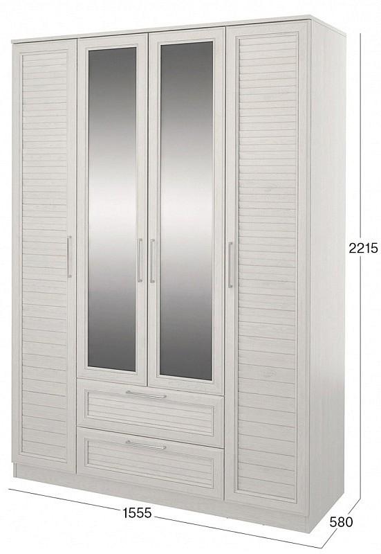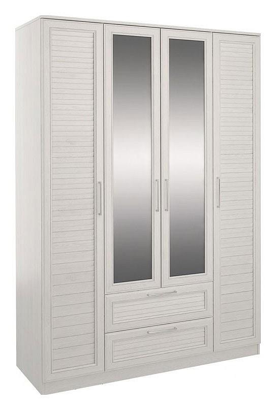 Шкаф 4-х дверный Лоретт дуб белый, зеркальный