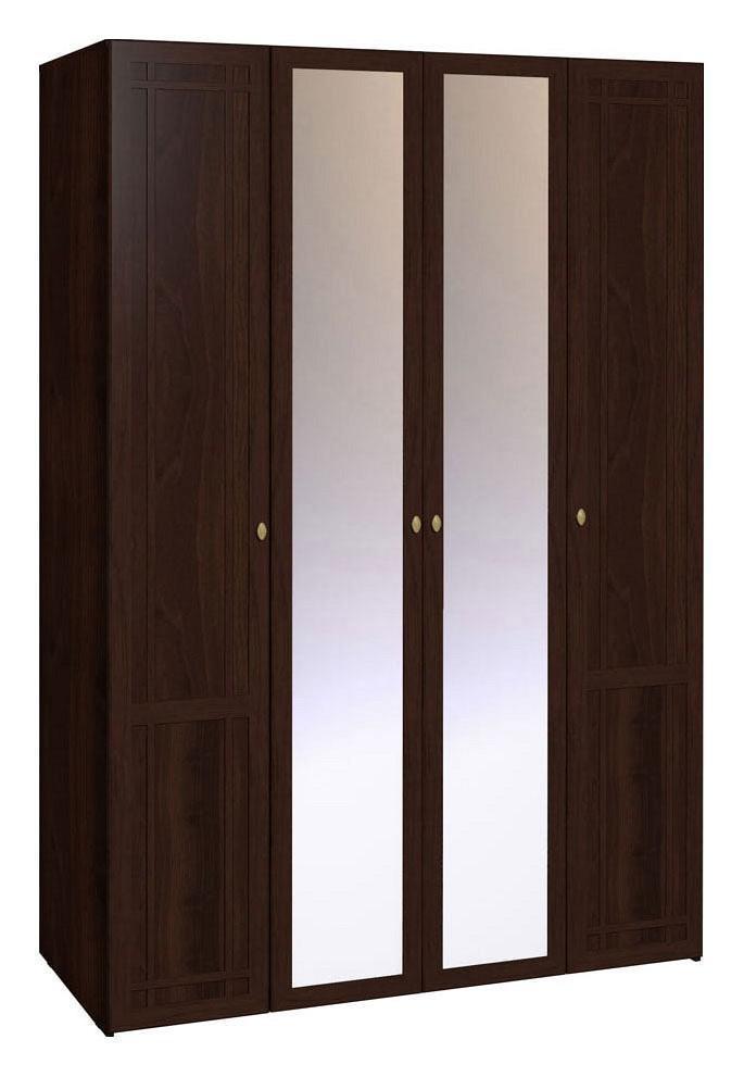Шкаф платяной Шерлок 60. Дизайн классической спальной комнаты отлично украсит и дополнит практичный и удобный шкаф с четырьмя распашными дверями. Центральный отдел оборудован двумя штангами, на которых удобно разместятся вещи на вешалках. Штанги разделены полкой, все детали имеют возможность устанавливаться на необходимой высоте, для удобства размещения ваших вещей. Два боковых отдела для белья оснащены множеством регулируемых полочек.