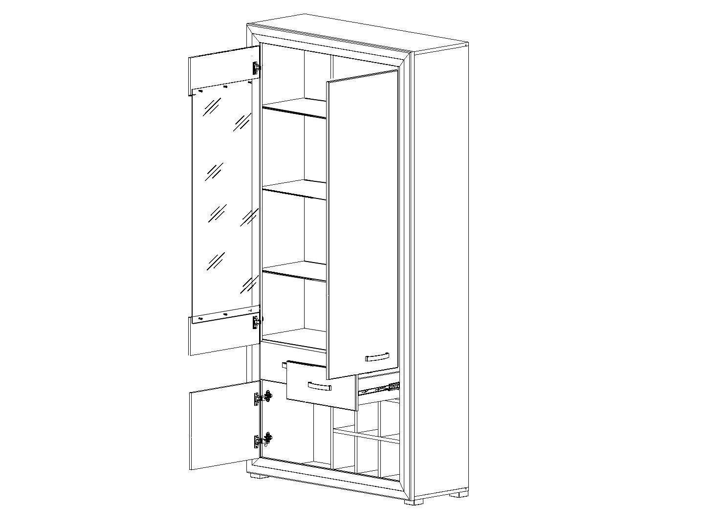 Компоненты, входящие в комплект 2 ящика, 3 дверцы, 7 полок