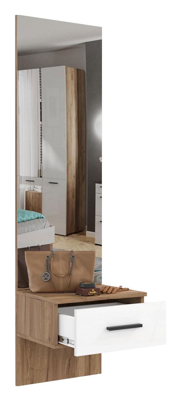 Стенка для прихожей Берн 95K HSB_95K_Bern создана популярным производителем мебели Hesby. Она относится к серии «Берн» и изготовлена в соответствии с общепринятыми стандартами качества. Предлагаемая рыночная цена за данную комплектацию составляет 12030 руб. Матовый корпус сделан из износостойкого материала (ЛДСП Е1), отличающегося долговечностью и легкостью в уходе, а его оттенок («дуб крафт») гармонично сочетается с расцветкой и фактурой фасада (МДФ, цвет «белый»). Стенка для прихожей Берн 95K включает в себя следующие компоненты: вешалка-полка - 450x266x1622 мм зеркало настенное - 450x320x1622 мм тумба - 900x346x360 мм. Желаем приятных покупок на нашем сайте!