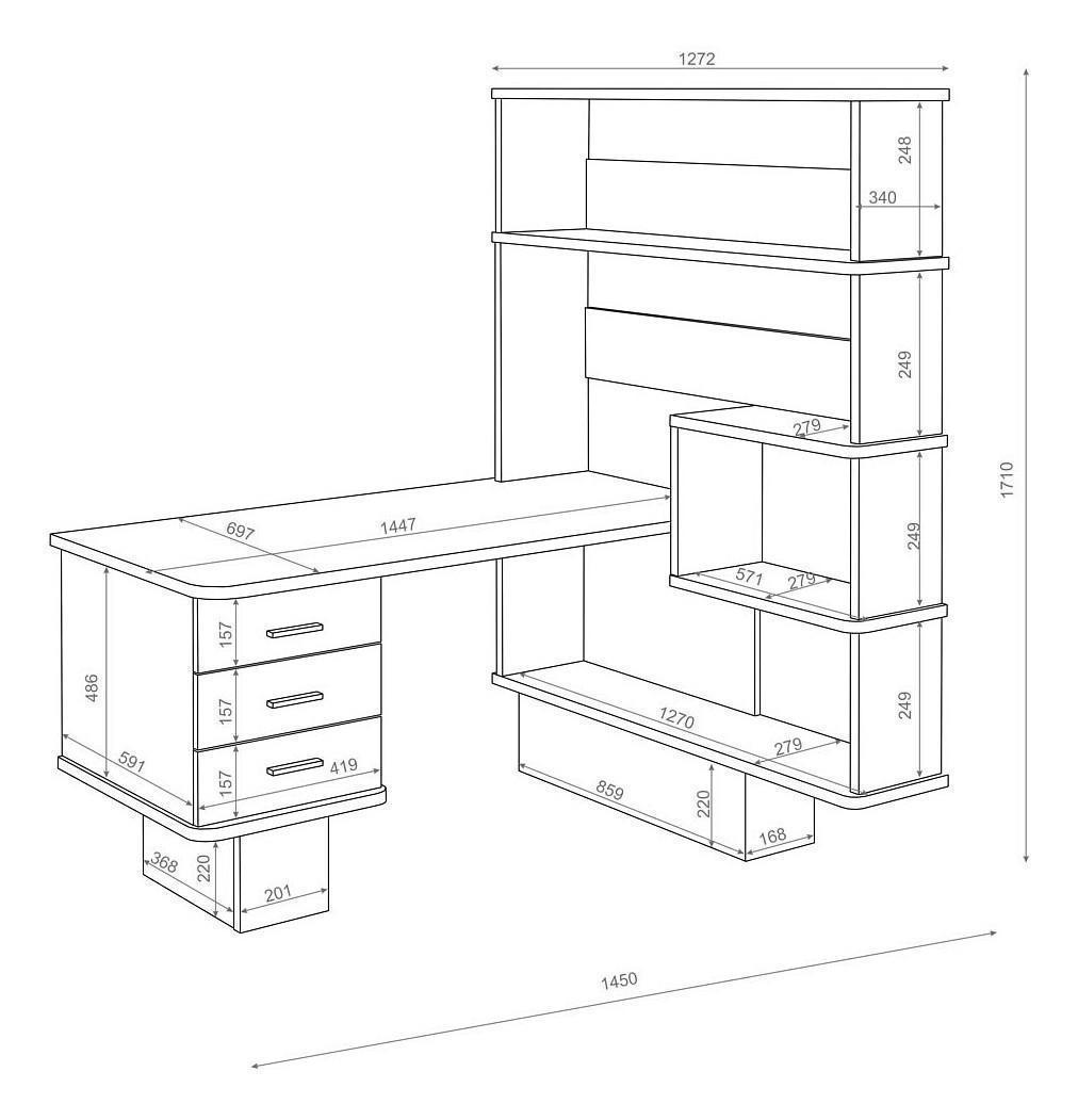 Удобный стол с легкой стеллажной секцией.