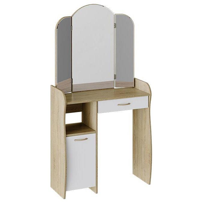 Полюбить себя и почувствовать настоящей женщиной – непростая задача, для этого нужно уметь ухаживать за собой, баловать профессиональной косметикой и, конечно, приобрести стол туалетный 6142 OEM_TRI_sklad_6142. Данная модель сделана модным брендом OEM. Это изделие относится к коллекции «» и стоит 6719 руб. В комплект входит 1 дверца, 1 полка, 1 ящик. Матовый корпус выполнен в изысканном оттенке «дуб сонома», который прекрасно сочетается с расцветкой фасада (белый), сделанного из ЛДСП Е1. Благодаря комфортным габаритам (изделие длиной 1520 мм, шириной 786 мм и с выступом 330 мм), вы сможете расположить все необходимое, сохранив при этом полезное пространство в уголке для женских секретов.
