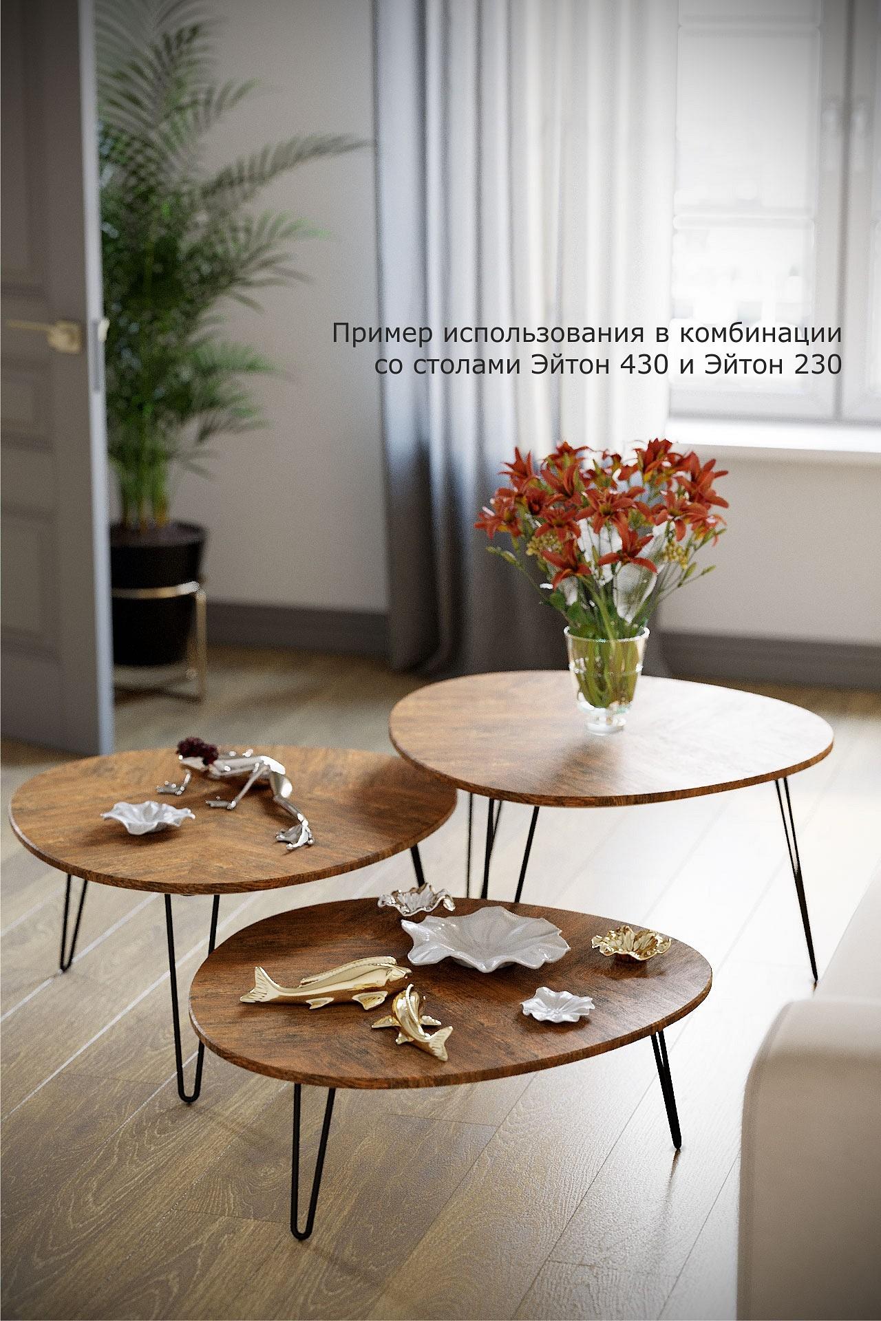 Дизайнерским приемом является и то, что столик Эйтон 330 можно комбинировать в интерьере с другими столиками серии Эйтон другой высоты.
