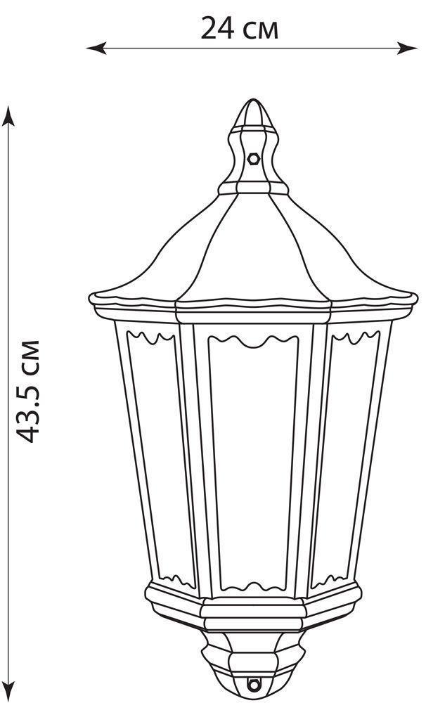 Светильник садово-парковый, серии «Классика» (НБУ) FERON 6206 1*60W, E27, 230V, IP44, цвет черный, 6-и гранник, на стену , 110*240*435мм