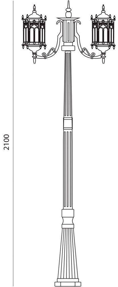 Светильник садово-парковый, серии «Багдад» (НТУ) FERON PL119 2*60W, E27, 230V, IP44, цвет черное золото, 6-и гранник, столб большой, 620*200*2100мм