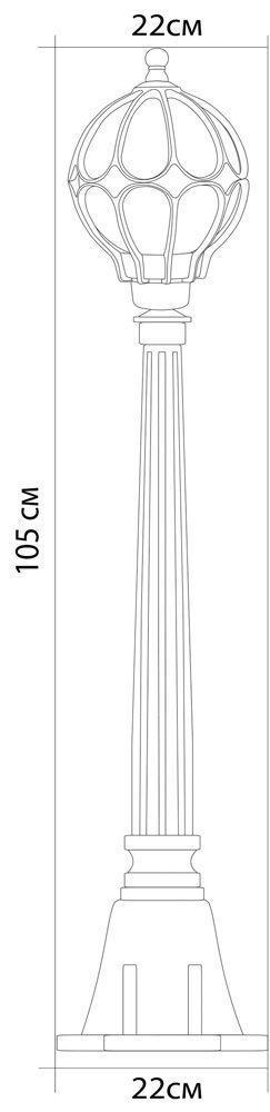 Светильник садово-парковый, серии «Версаль» (НТУ) FERON PL3806 1*60W, E27, 230V, IP44, цвет черное золото, шар, столб средний, 220*220*1050мм