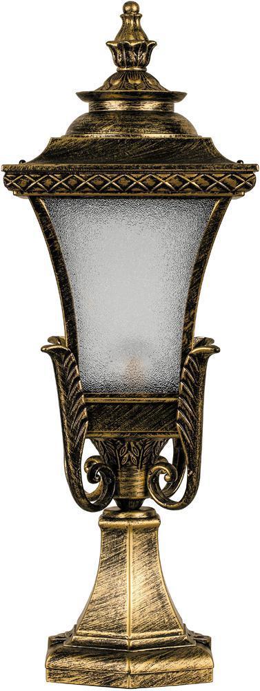 Светильник садово-парковый, серии «Валенсия» (НТУ) FERON PL4023 1*60W, E27, 230V, IP44, цвет черное золото, 4-х гранник, на постамент, 240*240*650мм