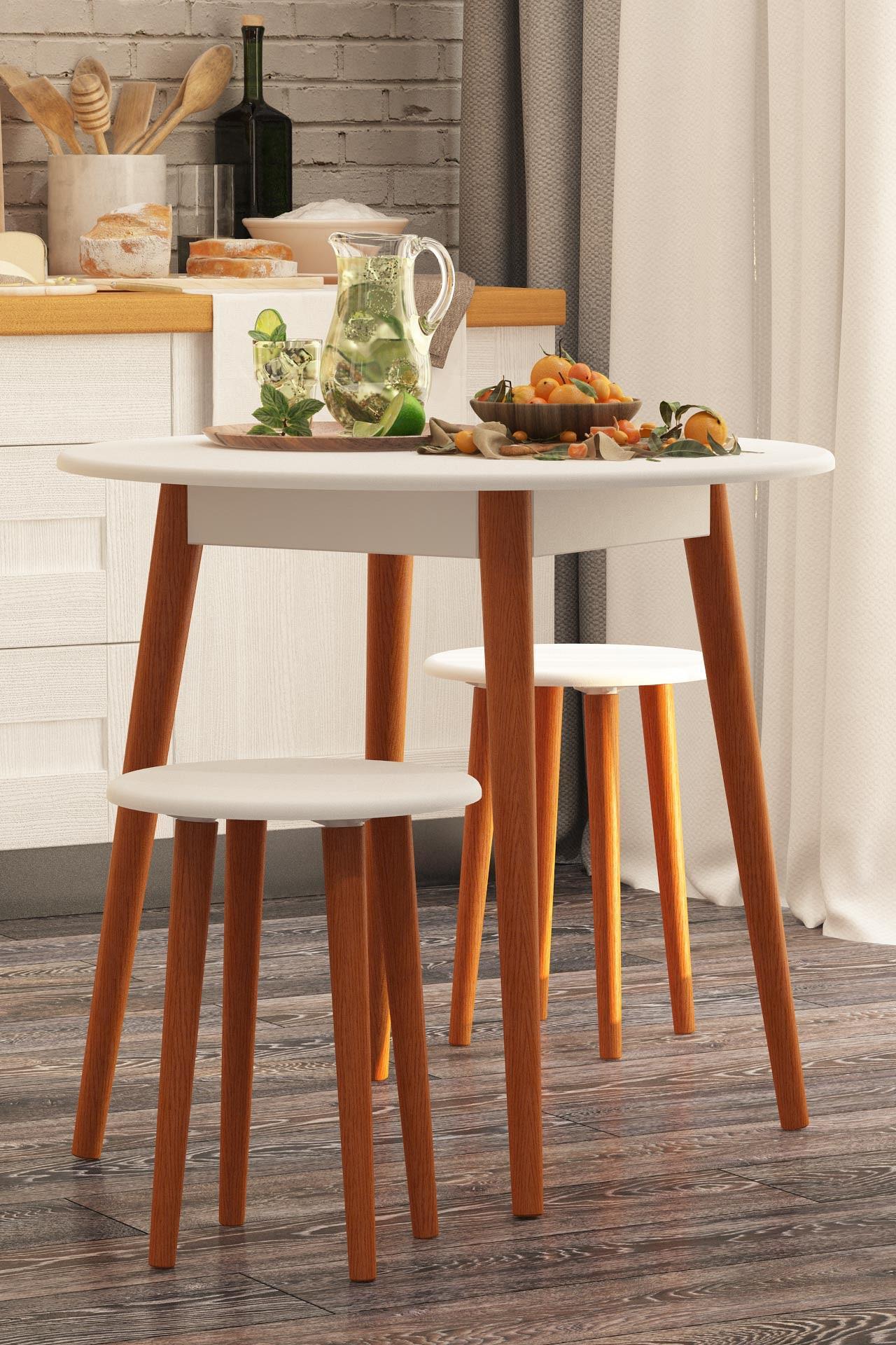 Табурет Орион отлично дополнит интерьер обеденной зоны. Белый цвет в сочетании с деревянными ножками гармонично впишется в любое стилевое решение кухни. Табурет может составить комплект с обеденным столом Орион.