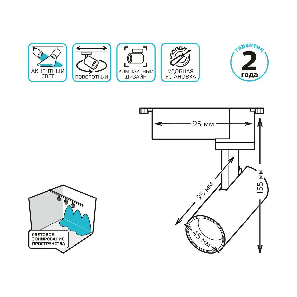 Трековый светодиодный светильник Gauss Track Light Led TR077