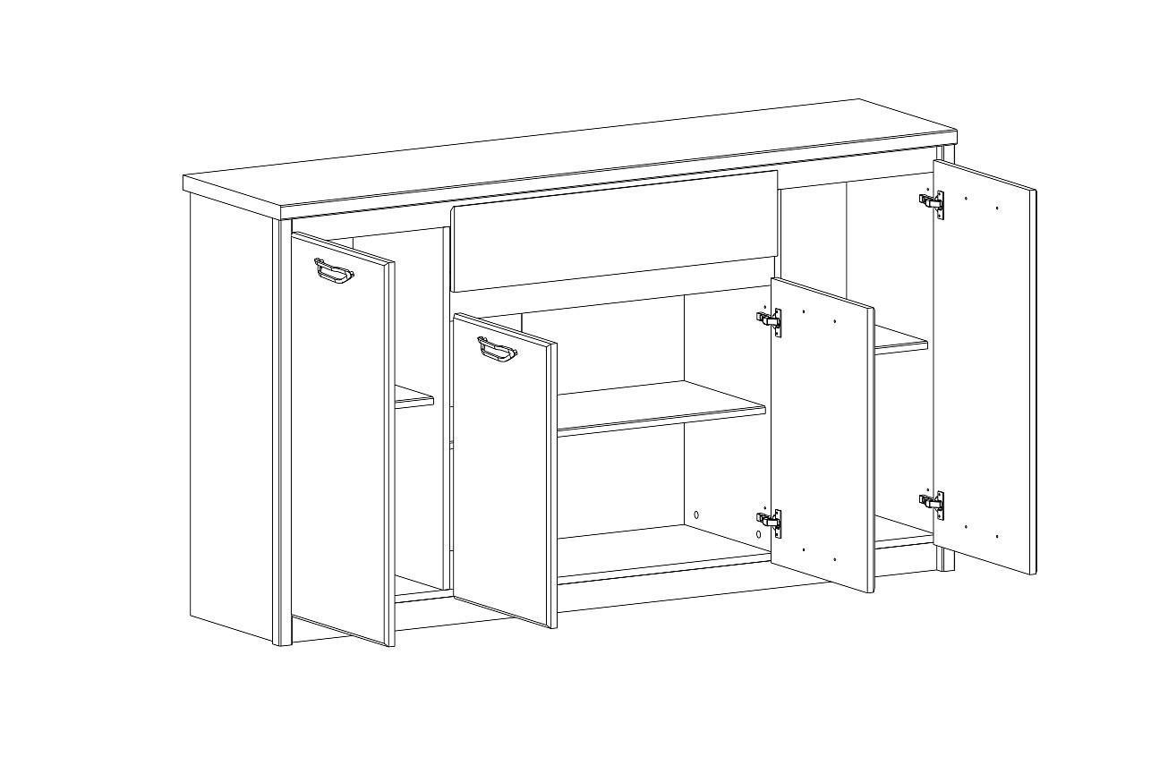 1 ящик,3 полки,4 дверцы