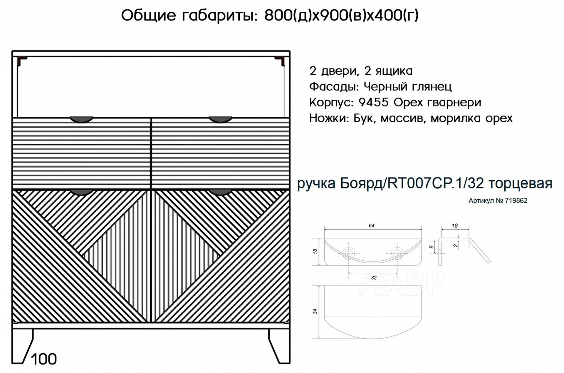 1 полка, 2 дверцы, 2 ящика