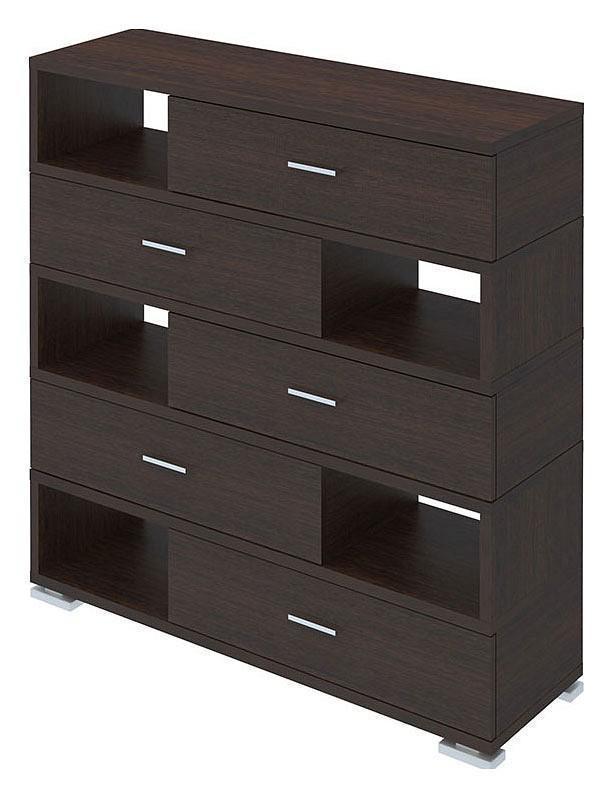 Когда все вещи лежат на своих местах – это залог уютного и аккуратного интерьера. Тем приятнее, когда зоной для хранения становится вместительная и надежная Тумба комбинированная Домино СБ-40/5 . Данная модель изготовлена компанией Merdes и входит в серию «». Матовый корпус изделия сделан из износостойкого материала ( ЛДСП Е1) и окрашен в благородный оттенок «венге». В комплект входит: 4 полки, 5 ящиков.