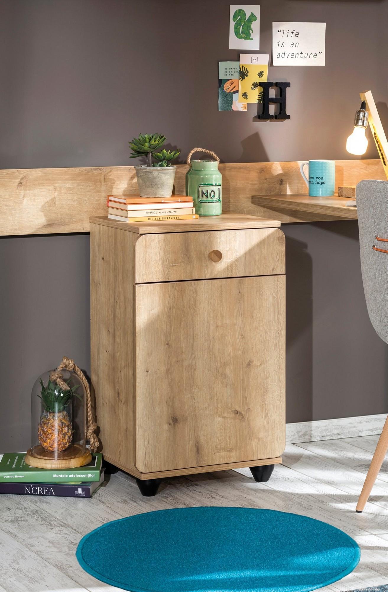 Журналы, игрушки и многочисленные материалы для творчества – этими вещами изобилует каждая детская. Упорядочить их поможет тумбочка Compact Mocha 20.30.1602.00 CLK_330192, которая разработана брендом Cilek в рамках коллекции «Mocha». Данный комплект стоит 14390 руб. и имеет следующие параметры: ширина 440 мм, глубина 370 мм и высота 710 мм. 1 дверца, 1 полка, 1 ящик делают тумбочку вместительной и функциональной, а благодаря прочному и практичному ЛДСП Е1, из которого сделан матовый корпус, эта модель прослужит вам много лет. Фасад окрашен в ненавязчивый оттенок (орех) и прекрасно гармонирует с остальной мебелью из данной коллекции.